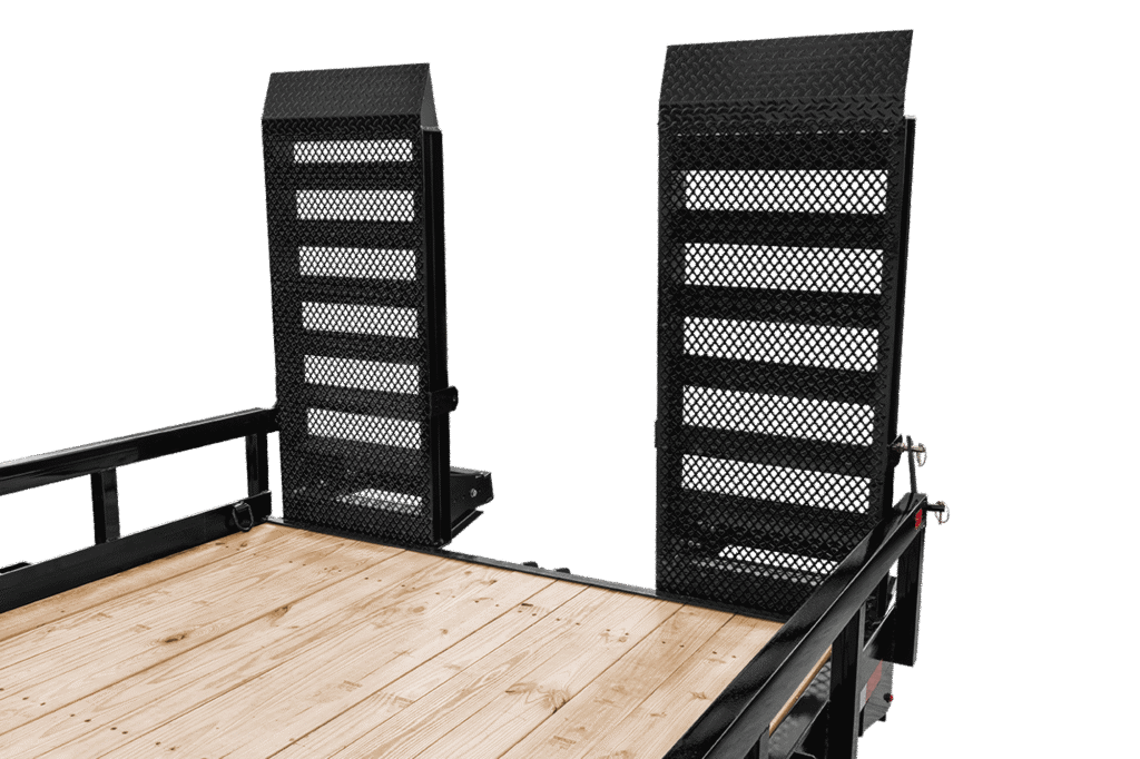 Features heavy-duty, mesh-covered ramps that are significantly beefier than standard utility ramps to handle heavier equipment weights.