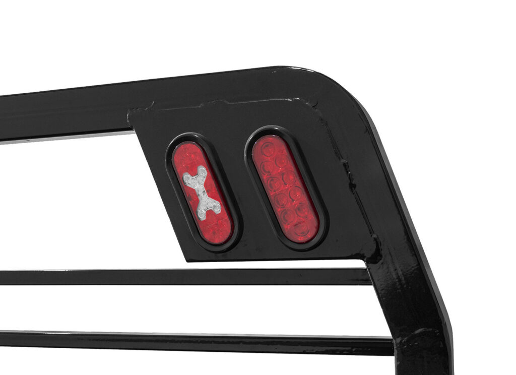The height-adjustable headache rack with integrated lights comes pre-drilled and pre-wired for easy installation of custom lights, strobes, or bolt-on accessories.